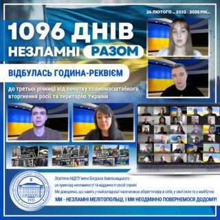 🏛️🇺🇦 У цей день у Мелітопольському державному педагогічному університеті імені Богдана Хмельницького відбулася година-реквієм “1096 днів незламності разом: ми – українці, і ми переможемо!”