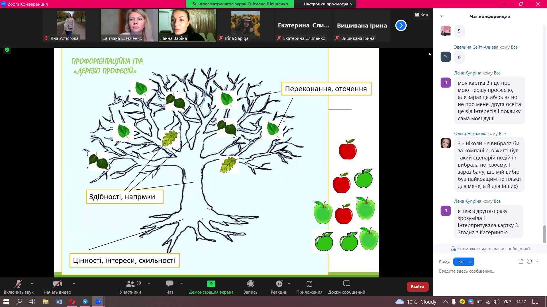17 листопада співробітники психологічного центру МДПУ – кандидат психологічних наук, доцент Шевченко С.В., магістр психології, старший викладач Варіна Г.Б.- організували і провели профорієнтаційну гру “ДЕРЕВО ПРОФЕСІЙ” на платформі Zoom.