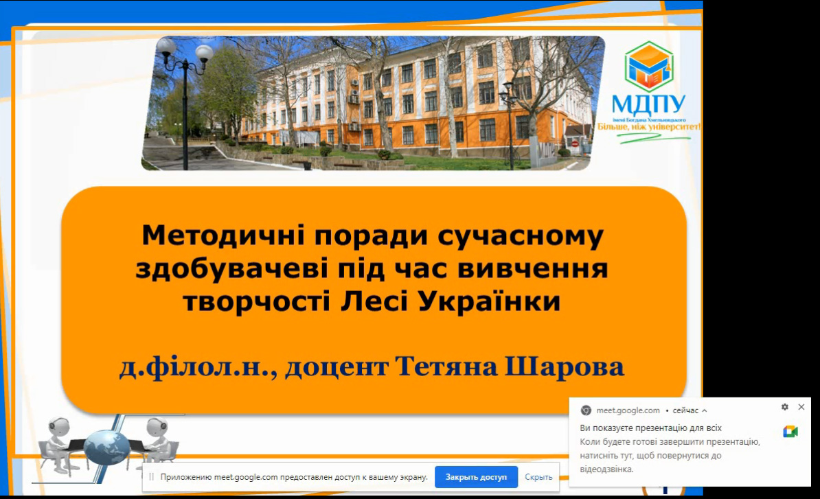 Шарова Т.М. виступила із доповіддю на тему: «Методичні поради сучасному здобувачеві під час вивчення творчості Лесі Українки», подавши на презентації сучасні аспекти вивчення творчості письменниці.