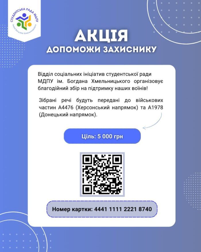 ✨ Відділ соціальних ініціатив студентської ради МДПУ ім. Богдана Хмельницького організовує благодійний збір на підтримку наших воїнів!