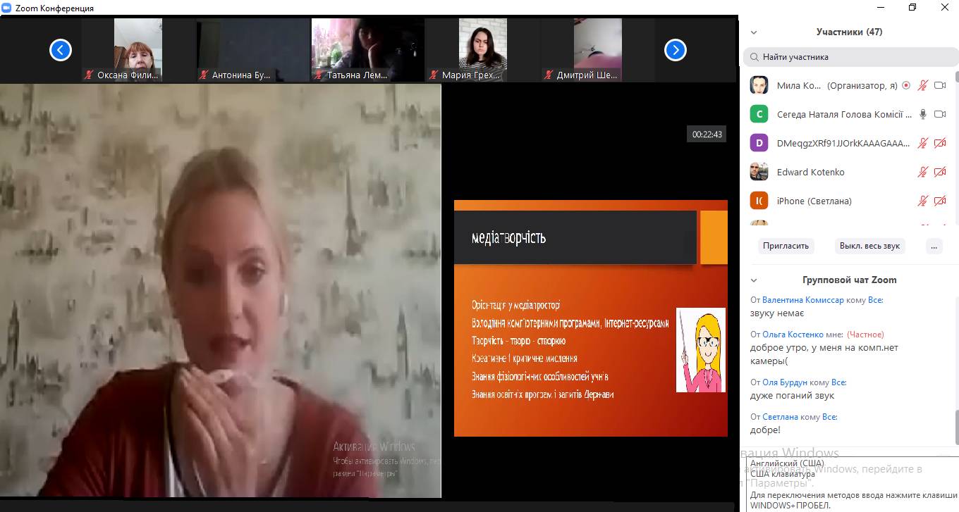 Учасники online-семінару мали можливість отримати мотиваційний навігатор пошуку джерел освітніх платформ для професійного розвитку і, натхнені прикладною складовою доповіді, в подальшому самостійно опановувати сучасні інформаційні технології для розвитку професійної медіакомпетентності у неформальній освіті педагога-музиканта.