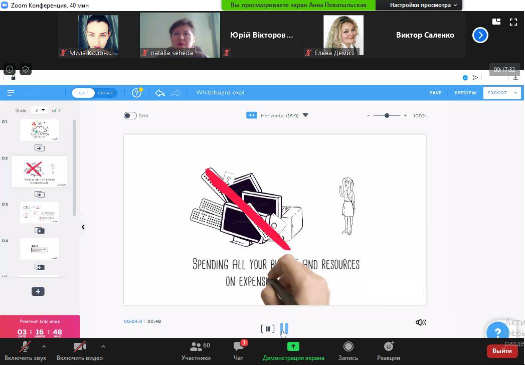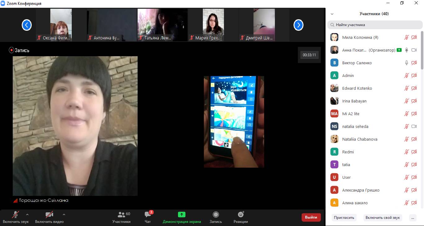 До семінару приєдналися 96 учасників – викладачів і адміністраторів ЗСО, шкіл мистецтв, музичних шкіл з Києва, Кам’янського, Дніпра, Мелітополя, Запоріжжя, Маріуполя, Марганця, Новомосковська, Токмака, Одеси, Запоріжжя, Генічеська, Сіверська, Новомосковська, Харкова і районів. Їм було продемонстровано як створити урок за допомогою ряду програм для відео-монтажу, набору нотного тексту, графічних та аудіо редакторів, інтелект-карт; як створити флешанімацію до пісні, використовуючи власні малюнки; авторську музичну листівку; як намалювати автопортрет; створити музей у грі Майнкрафт і провести екскурсію у віртуальному світі комп’ютерної гри. Присутні ознайомились з прикладами творчих завдань, спрямованих на арт самовираження підлітка засобами музичного, образотворчого, хореографічного видів мистецтва, які можна виконати, використовуючи можливості смартфона в умовах дистанційного навчання.
