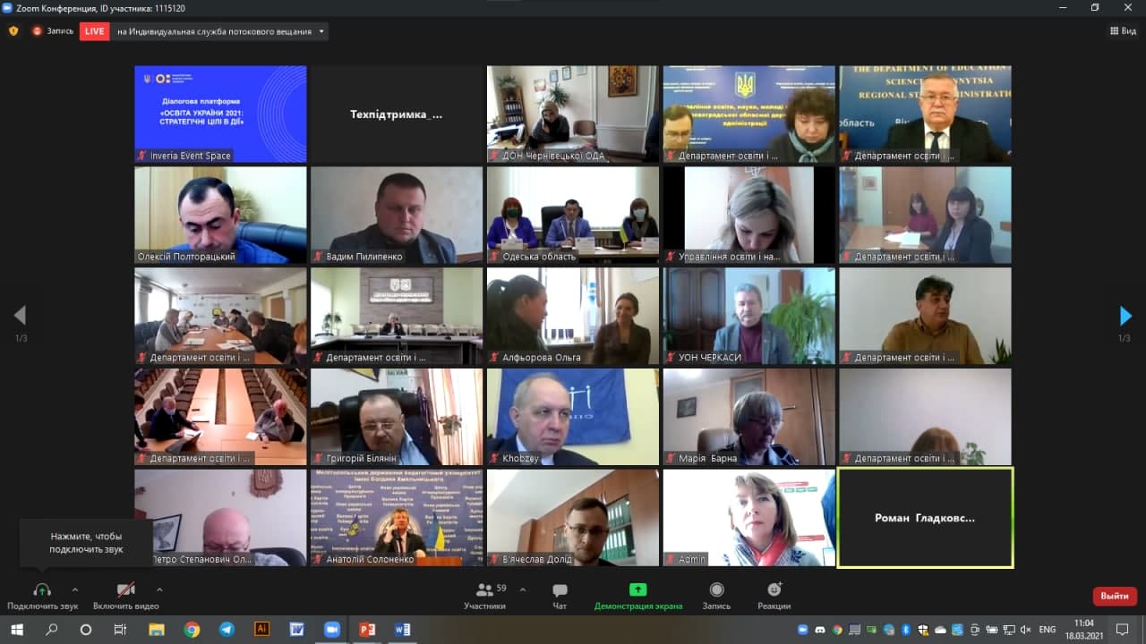 Під час заходу обговорювалися питання щодо розвитку загальної середньої освіти: досягнення, виклики; розвитку загальної середньої освіти: досягнення, виклики; підготовки педагогічних кадрів: здобутки, проблеми, перспективи; безпечного середовище для дітей: взаємодія органів Національної поліції України зі школою; реформи освіти в умовах децентралізації; консолідації зусиль органів державної влади та місцевих органів управління у сфері освіти; Нової української школи: новий вимір результатів; забезпечення якості освіти: передовий міжнародний досвід; безбар’єрності в освіті: доступність будівель і споруд, інклюзивність освітнього процесу; реформування системи шкільного харчування.