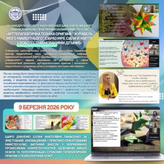 💬У межах заходу спікерка представила сучасні науково-методичні підходи до використання арттерапії як ефективного інструменту психологічної підтримки дітей, які пережили травматичний досвід. Особливу увагу було приділено символічному та ресурсному потенціалу творчих технік у процесі роботи з емоційними переживаннями, формуванням образу майбутнього та відновленням внутрішніх психологічних ресурсів.