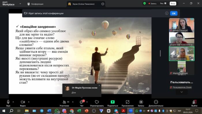 🤝 Кафедра психології МДПУ імені Богдана Хмельницького щиро дякує Елліні Анатоліївні Панасенко за змістовний, інноваційний і практико-орієнтований майстер-клас, вагомий внесок у формування професійних компетентностей здобувачів вищої освіти та популяризацію сучасних терапевтичних практик у психологічній освіті.