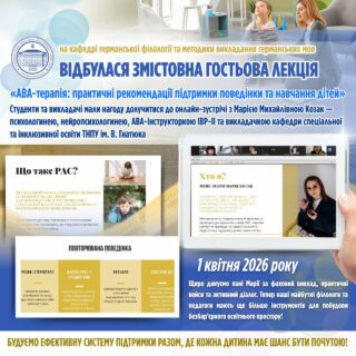 🎯📚 Тема зустрічі опинилася на перетині психології та педагогіки: «АВА-терапія: практичні рекомендації підтримки поведінки та навчання дітей».