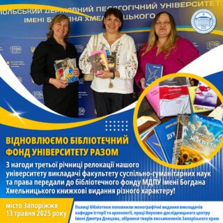 📚🏛️Полиці бібліотеки поповнили монографії викладачів кафедри історії та археології, праці Науково-дослідницького центру імені Дмитра Донцова, збірники творів письменників Запорізького краю тощо.