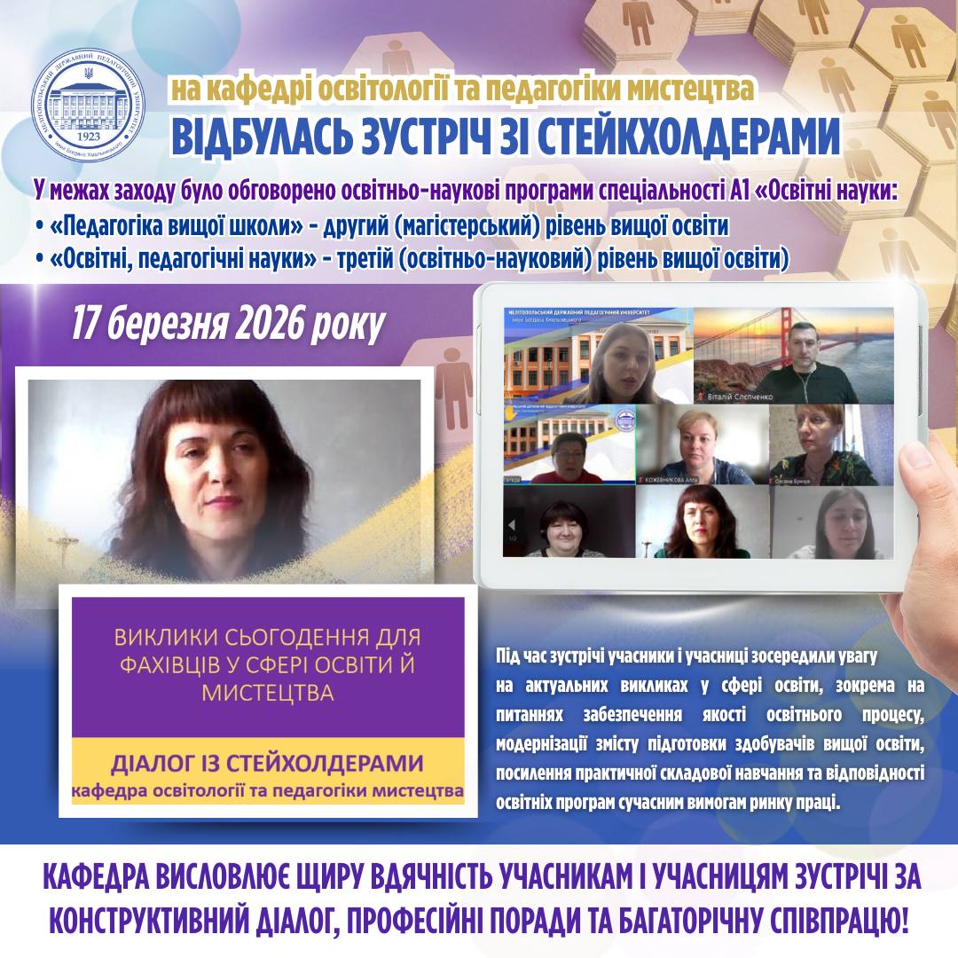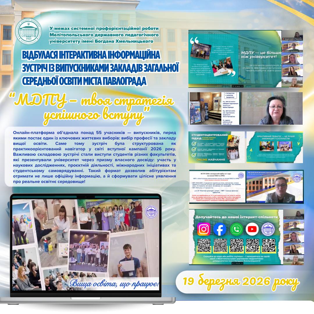 🎓 19 березня 2026 року за ініціативи кафедри германської філології та методики викладання германських мов, науково-методичного центру «Lingua» відбулась практико-орієнтована гостьова лекція. Спікеркою виступила учителька англійської мови інтернаціонального дитячого садочка «Holly» м. Гуанчжоу, Китай, Ольга Волотовська. 🔍 Ключові аспекти лекції:📖 специфіка раннього навчання: аналіз особливостей викладання англійської мови в китайських дошкільних закладах та створення інтенсивного […]