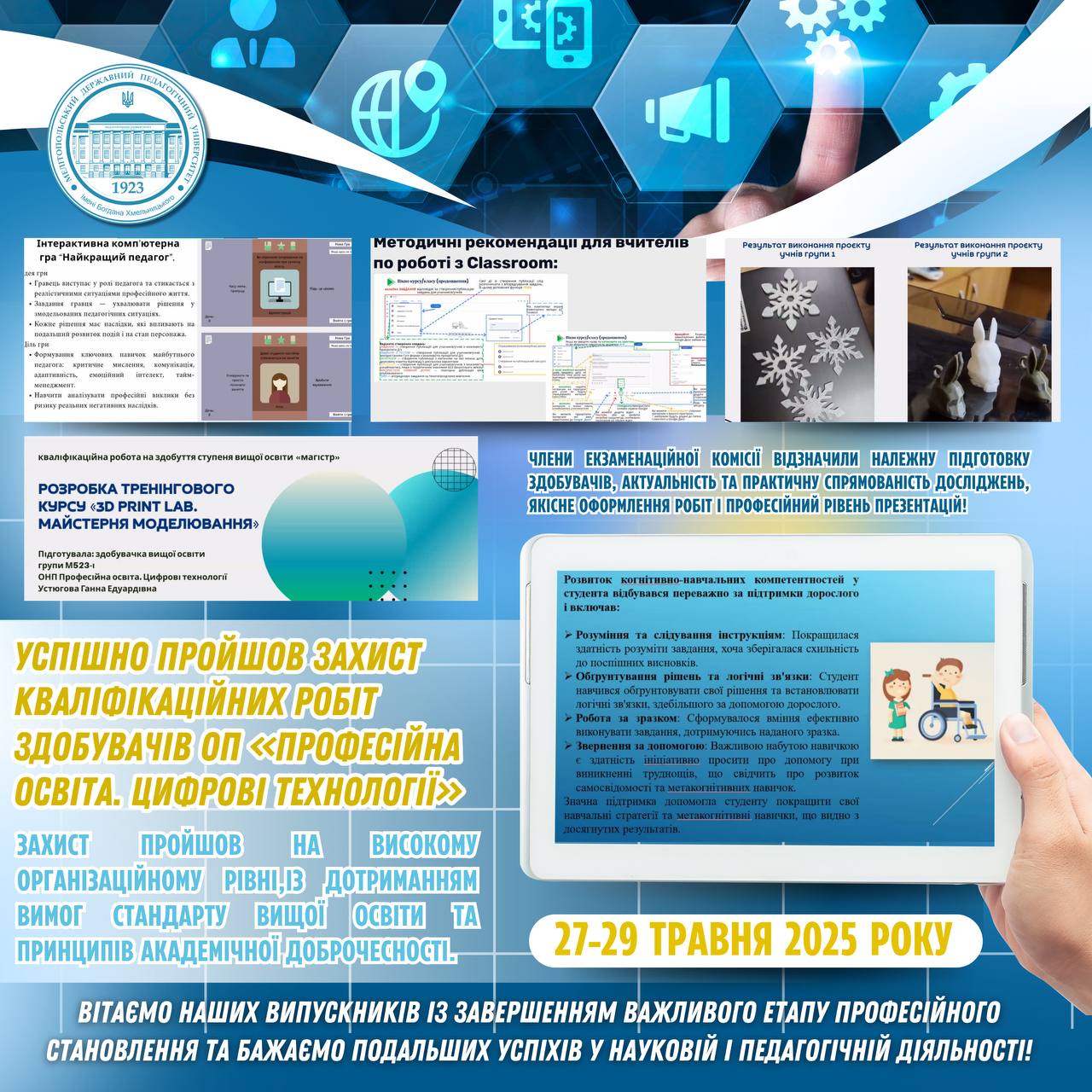 🏛️📚У період з 27 по 29 травня 2025 року на кафедрі інформатики і кібернетики пройшов захист кваліфікаційних робіт здобувачів другого (магістерського) рівня вищої освіти за освітньою програмою «Професійна освіта. Цифрові технології» спеціальності 015.39 Професійна освіта (Цифрові технології). 👩🏻🎓🚀 Здобувачі продемонстрували високий рівень фахової підготовки, сформованість професійних та загальних компетентностей, упевнене володіння методологічним апаратом дослідження. 📖✅ […]