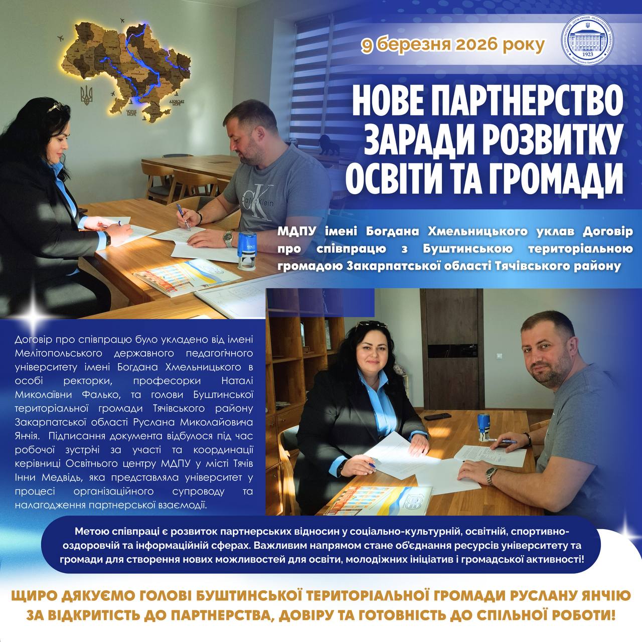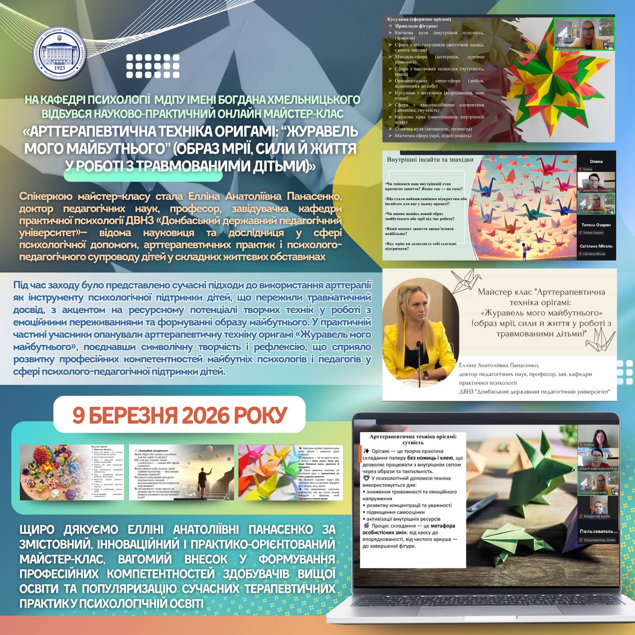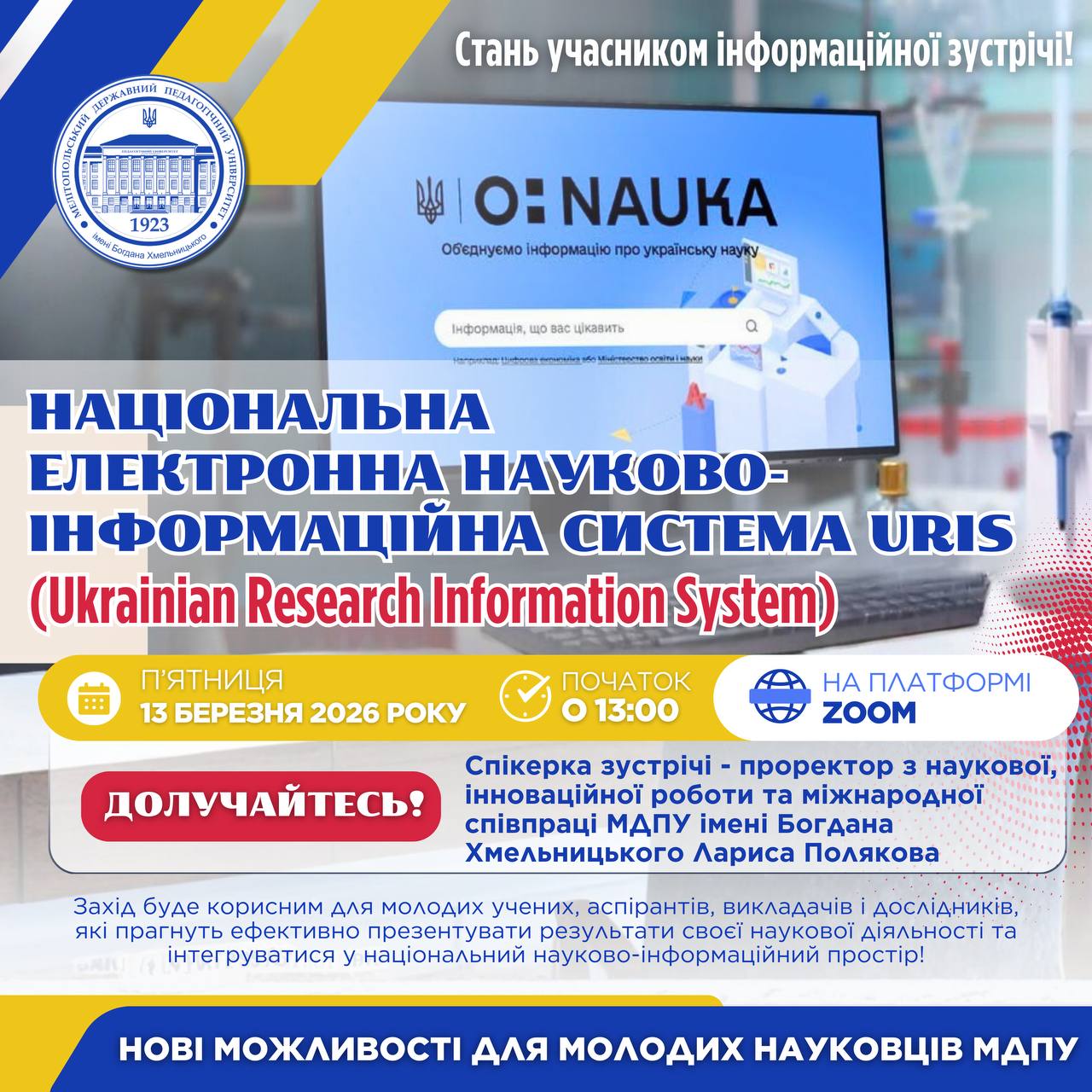 📅🌐 10 березня 2026 року відбулася відкрита онлайн-лекція «Лабораторія мислення: навчання через взаємодію», організована кафедрою ботаніки, екології та методики навчання біології Полтавського національного педагогічного університету імені В.Г. Короленка спільно з кафедрою ботаніки, екології та садово-паркового господарства Мелітопольського державного педагогічного університету імені Богдана Хмельницького. 👩🏫📚 Лекторкою виступила доктор педагогічних наук, професор, завідувач кафедри ботаніки, екології та […]