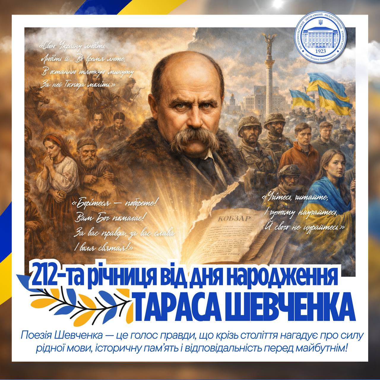 🌿 9 березня Україна вшановує 212-ту річницю від дня народження Тарас Шевченко — поета, художника, мислителя і духовного провідника українського народу. Його творчість стала не лише літературною спадщиною, а й потужним джерелом національної свідомості, гідності та свободи. 📚 Поезія Шевченка — це голос правди, що крізь століття нагадує про силу рідної мови, історичну пам’ять і […]