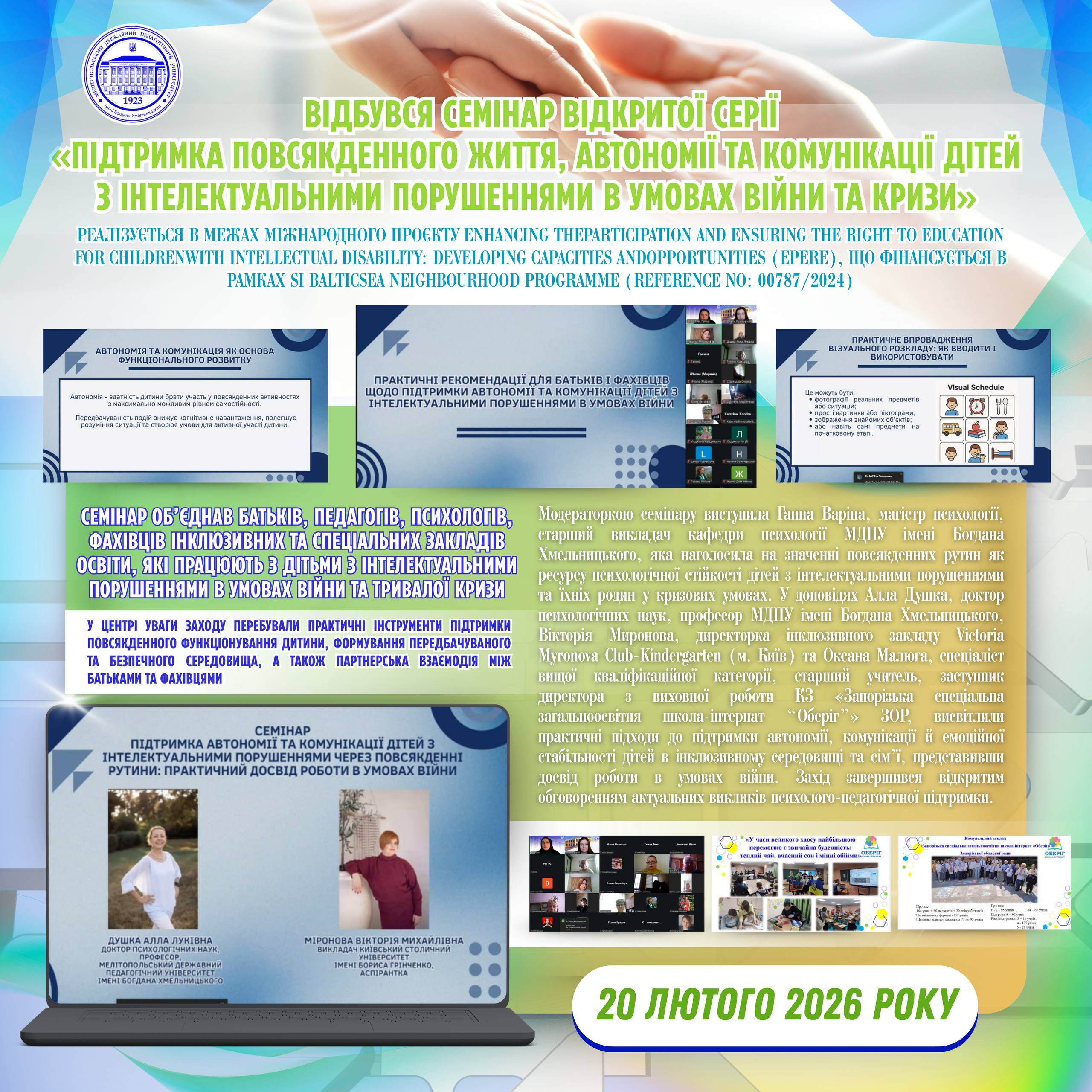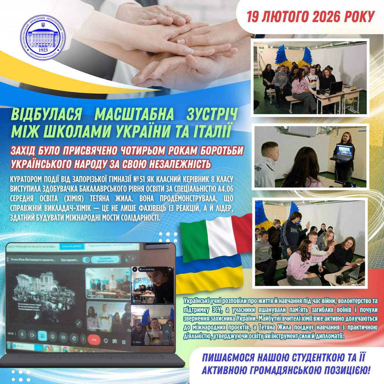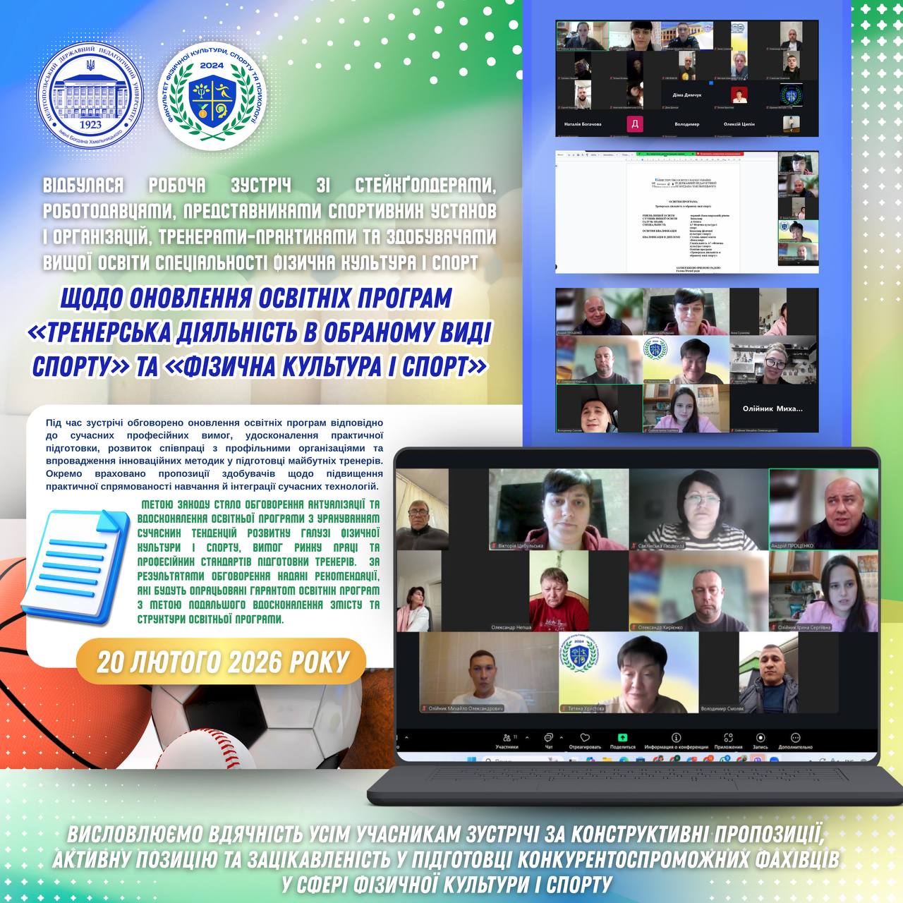 📅 20 лютого 2026 року у межах реалізації внутрішньої системи забезпечення якості вищої освіти відбулася робоча зустріч зі стейкґолдерами, роботодавцями, представниками спортивних установ і організацій, тренерами-практиками та здобувачами вищої освіти спеціальності «Фізична культура і спорт». 🎯 Метою зустрічі стало обговорення актуалізації та вдосконалення освітніх програм з урахуванням сучасних тенденцій розвитку галузі, вимог ринку праці […]