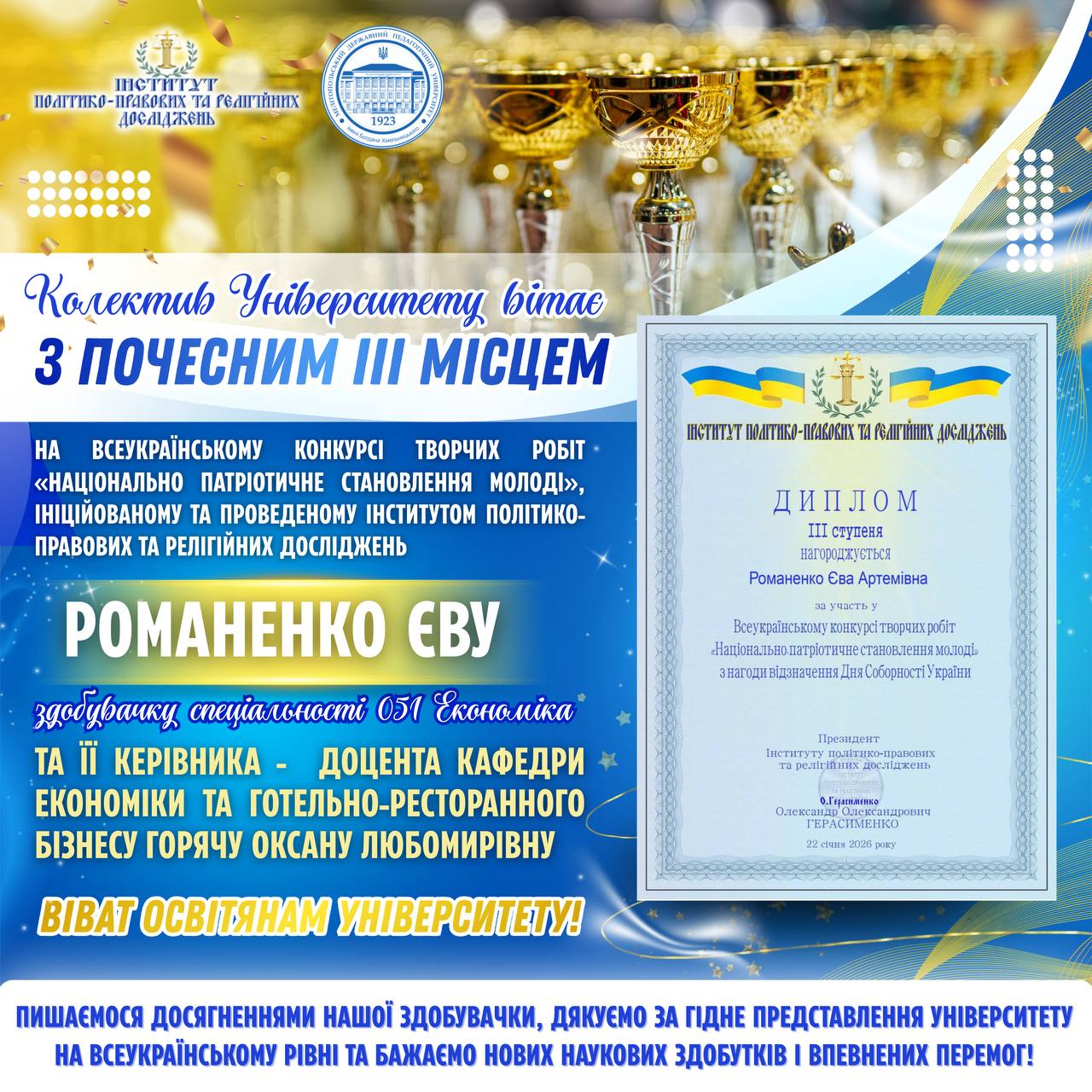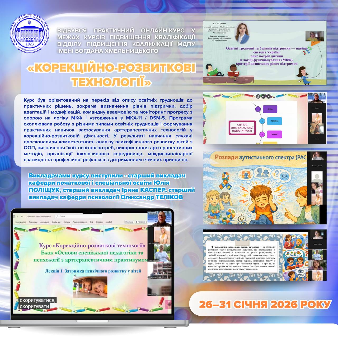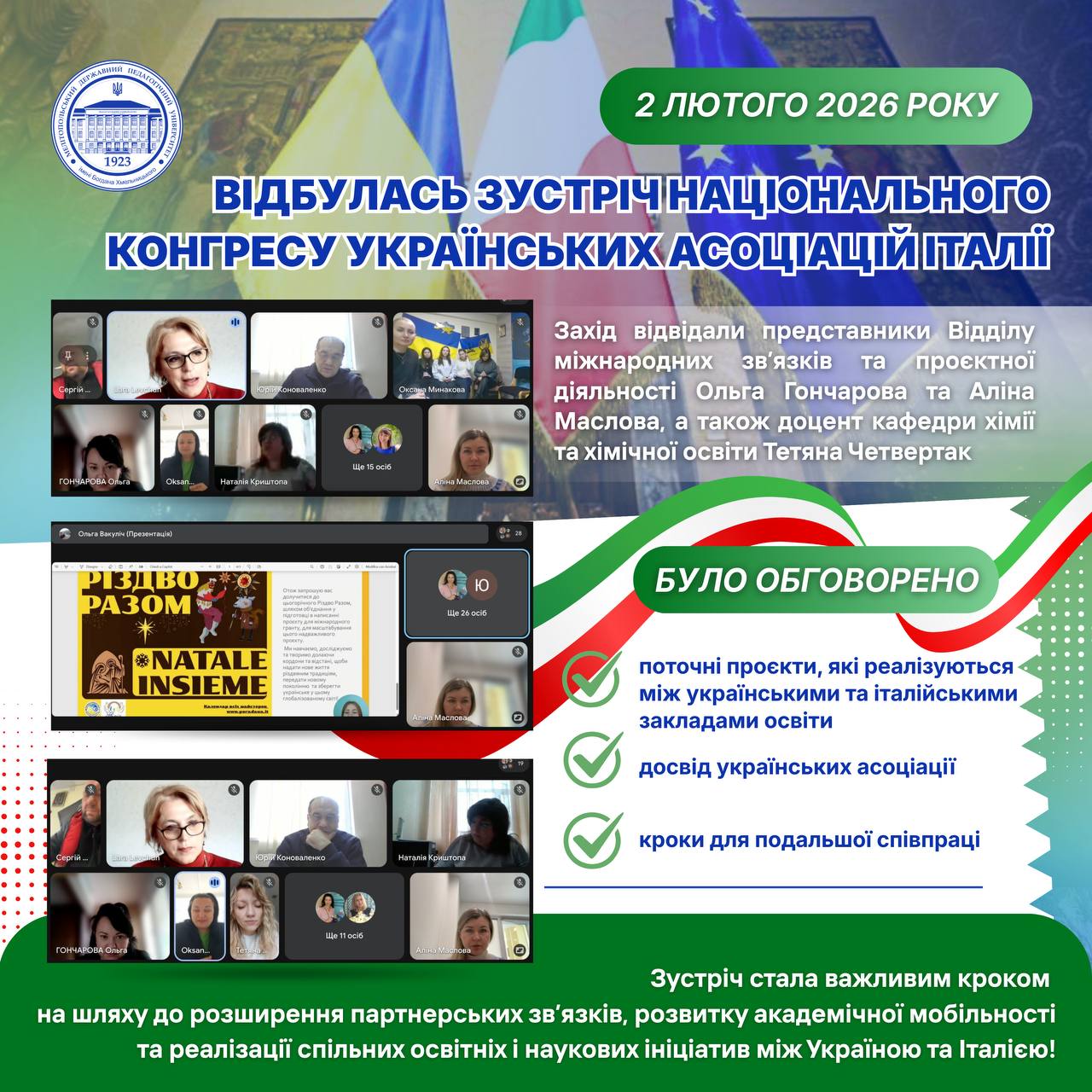 ✅👩🏼🏫 4–6 лютого 2026 року, відповідно до наказу Національне агентство із забезпечення якості вищої освіти від 21 січня 2026 року № 78-Е, відбудеться акредитаційна експертиза освітніх програм: 🔺 ID 28870 — ОП «Середня освіта. Фізична культура»🔺 ID 56455 — ОП «Тренерська діяльність в обраному виді спорту» 👩🏼💻🇺🇦 Запрошуємо всіх бажаючих долучитися до відкритої зустрічі в […]