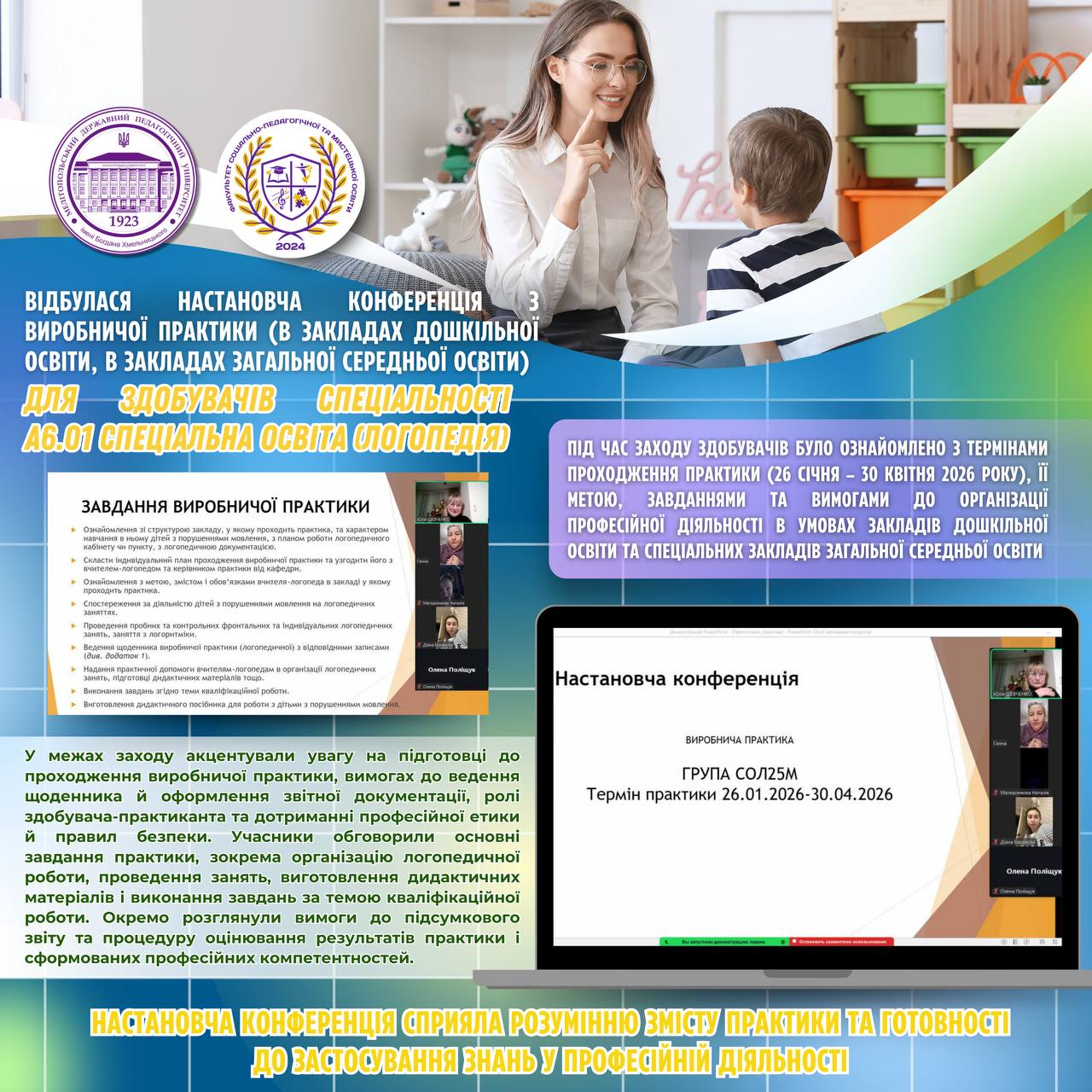 📌 У межах освітнього процесу відбулася настановча конференція з виробничої практики (в закладах дошкільної освіти, в закладах загальної середньої освіти) для здобувачів вищої освіти групи СОЛ-25М, які навчаються за програмою підготовки фахівців у галузі спеціальної освіти (логопедія). 🗓 Під час заходу здобувачів було ознайомлено з термінами проходження практики (26 січня – 30 квітня 2026 року), […]