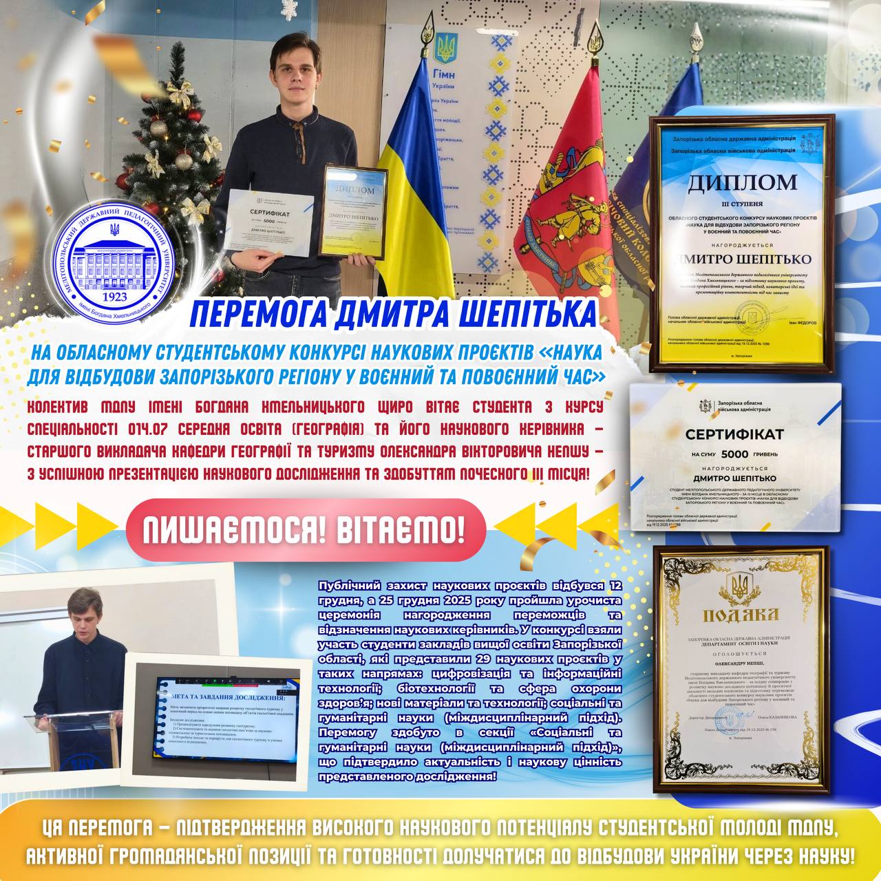🗳️ Сьогодні, 30 грудня 2025 року, кожен студент має можливість вплинути на студентське життя та зробити свій вибір. ❗Розпочинається таємне голосування з обрання голови Студентської ради МДПУ імені Богдана Хмельницького на 2026 рік. 📲 Перейти до голосування просто — скануй QR-код на фото та долучайся до виборчого процесу онлайн. Ідентифікатор конференції: 867 8375 9843Код доступу: […]