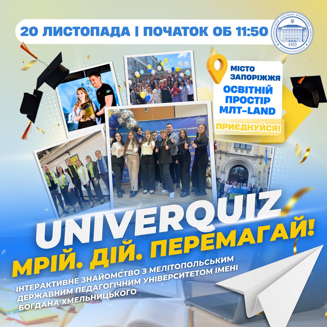 🚀✅ Готові до інтелектуального драйву, відкриттів та подарунків? Тоді UNIVERQUIZ — саме для тебе! 👥🥳Мелітопольський державний педагогічний університет імені Богдана Хмельницького запрошує на День відкритих дверей, де знання перетворюються на суперсилу, а кмітливість та швидкість — на шлях до перемоги! 📆 20 листопада 2025 року 🕒 11:50 📍 м. Запоріжжя, проспект Соборний, 172 — Освітній […]