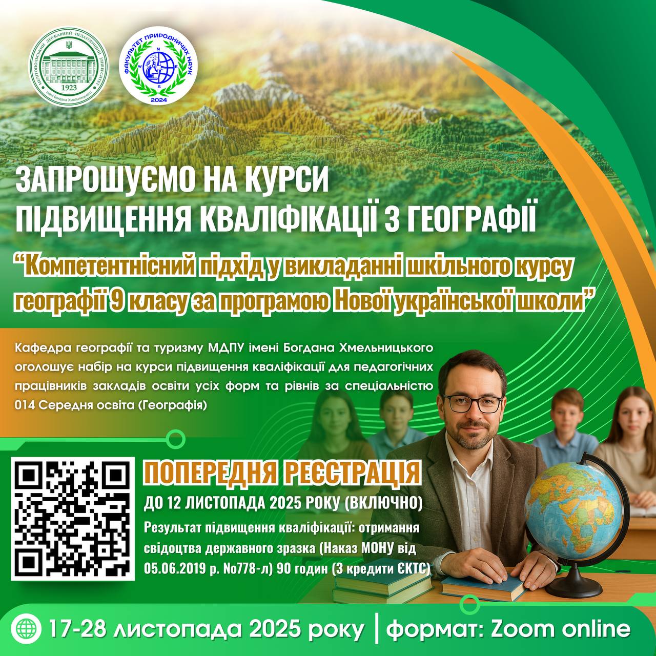🗺🧭 Кафедра географії та туризму Мелітопольського державного педагогічного університету імені Богдана Хмельницького оголошує набір на курси підвищення кваліфікації для педагогічних працівників закладів освіти усіх форм та рівнів за спеціальністю 014 Середня освіта (Географія), освітньо-професійною програмою: 📌Компетентнісний підхід у викладанні шкільного курсу географії 9 класу за програмою Нової української школи – 90 годин (3 кредити ЄКТС) […]