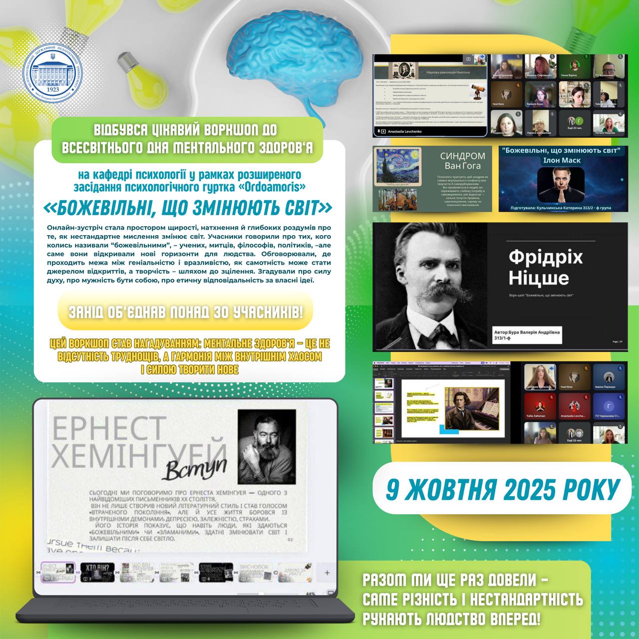 🏛️✅ 9 жовтня 2025 року для здобувачів другого (магістерського) рівня вищої освіти зі спеціальності А6.01 Спеціальна освіта (Логопедія) професором кафедри початкової і спеціальної освіти був проведений методичний семінар на тему:«Написання кваліфікаційної роботи зі спеціальності А6.01 Спеціальна освіта (Логопедія): від вибору теми до написання загальних висновків». 📖✏️Метою проведення семінару було:🚀 підвищення рівня методичної підготовки магістрантів щодо […]