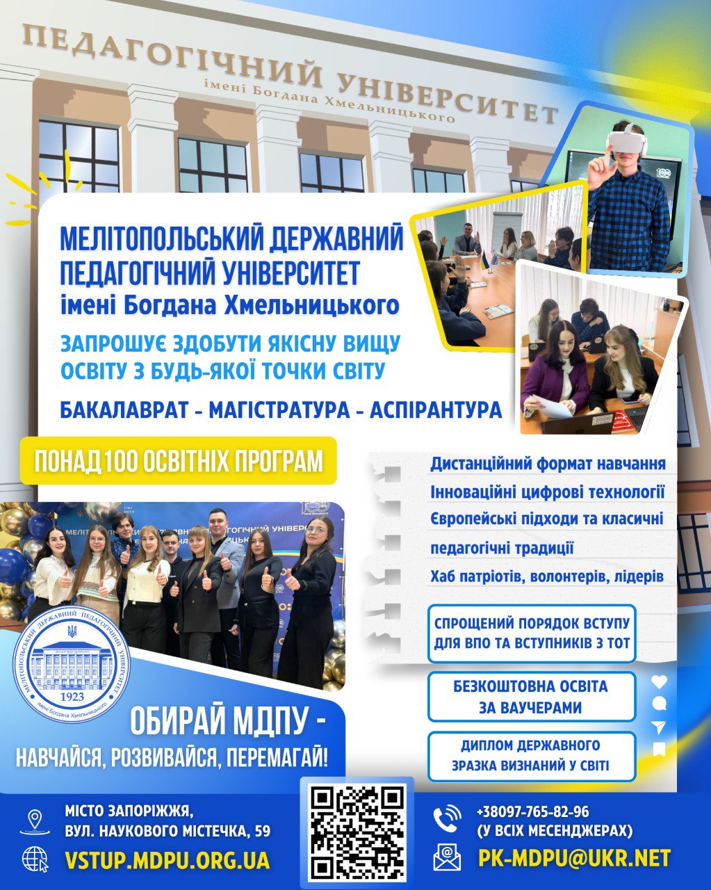 В МДПУ імені Богдана Хмельницького ти отримаєш більше, ніж диплом — ти отримаєш запуск у кар’єру та життя мрії: 🔥 Освіта, що виходить за межі аудиторій — практики, експедиції, міжнародні стажування.💡 Інноваційні технології — VR-лабораторії та креативні майстерні.🤝🏻 Прямі зв’язки з бізнесом та громадами — реальні кейси, стартапи, спільні проєкти.🌍 Диплом, який працює у світі […]