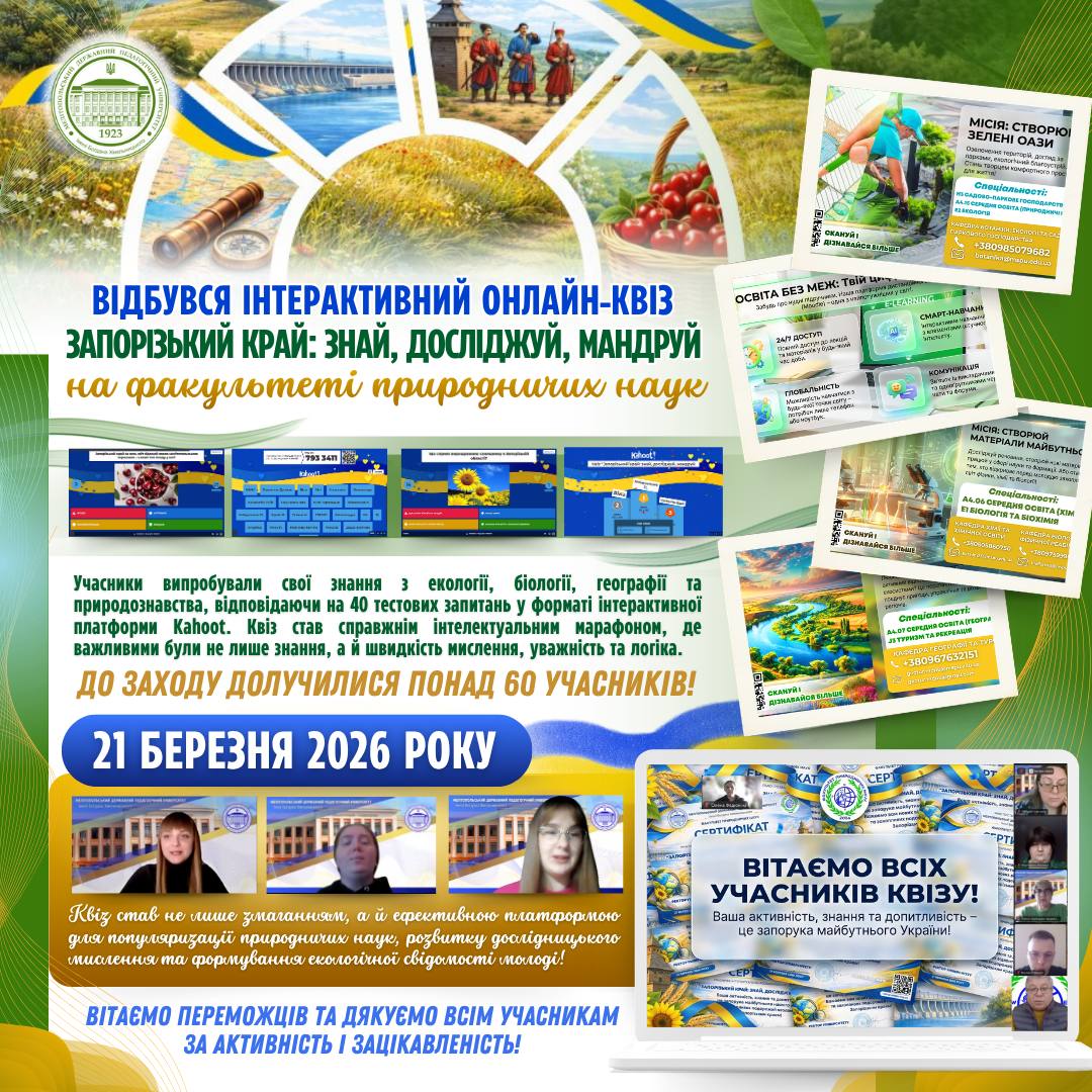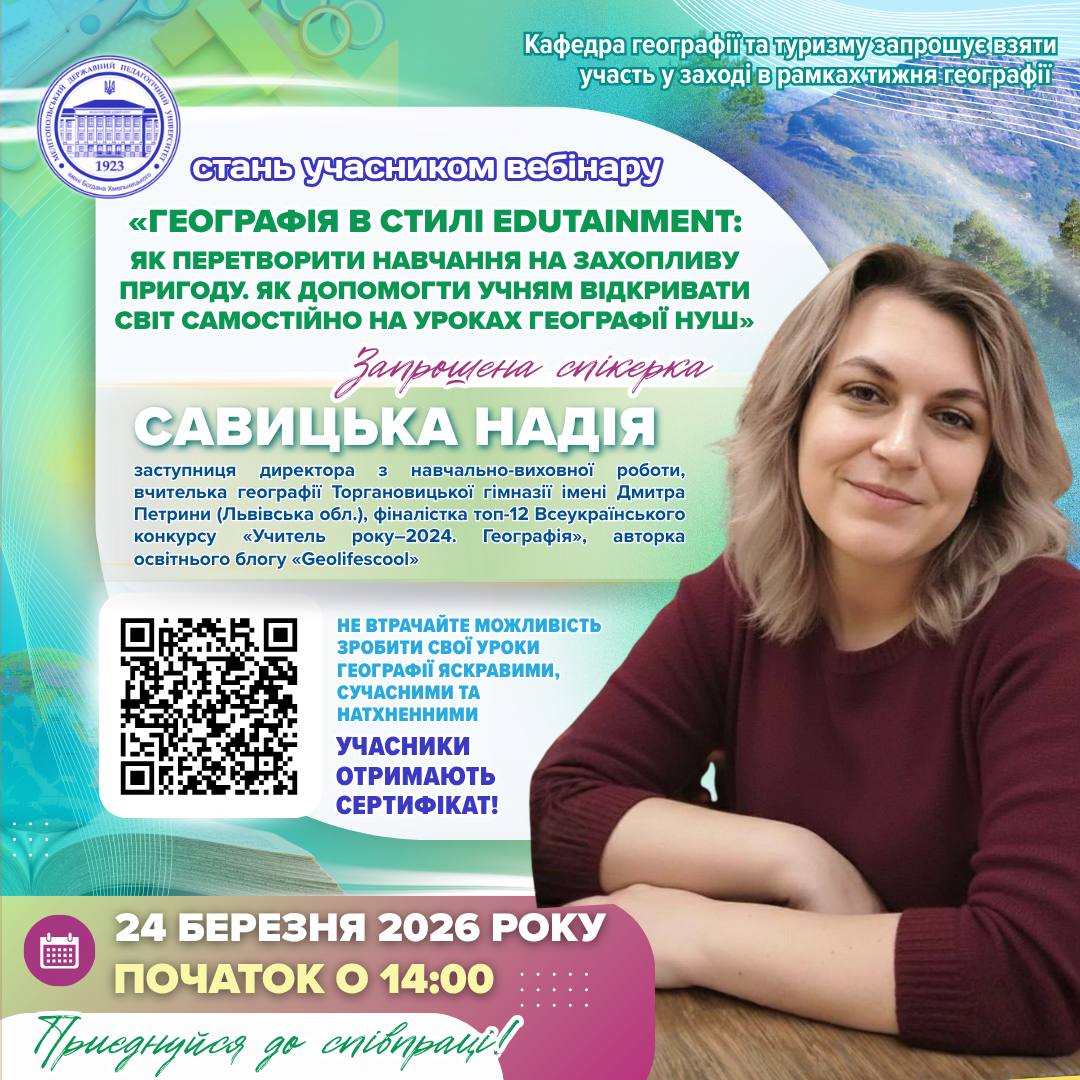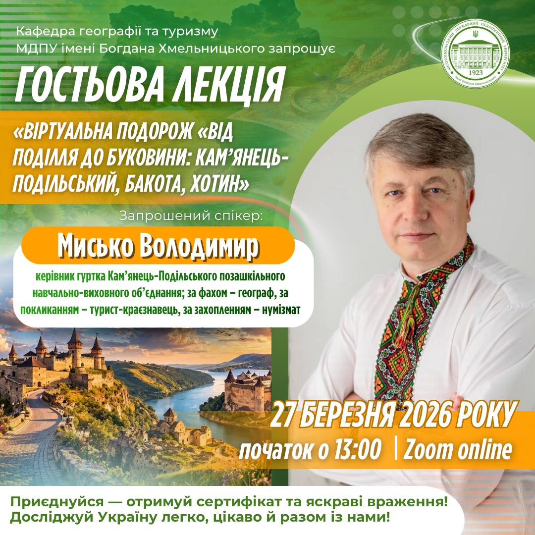 💥🥳До Дня географа України 2026 кафедра географії та туризму Мелітопольського державного педагогічного університету імені Богдана Хмельницького запрошує усіх бажаючих на яскраве та динамічне святкування! ✅🏛На Вас чекають урочистий захід, видовищний географічний флешмоб і захоплива інтелектуальна Kahoot-вікторина, де найкмітливіші здобудуть цінні нагороди! 📅💫27 березня 2026 року о 14:00 ми зустрінемося у ZOOM-відеоконференції, щоб разом відзначити це […]