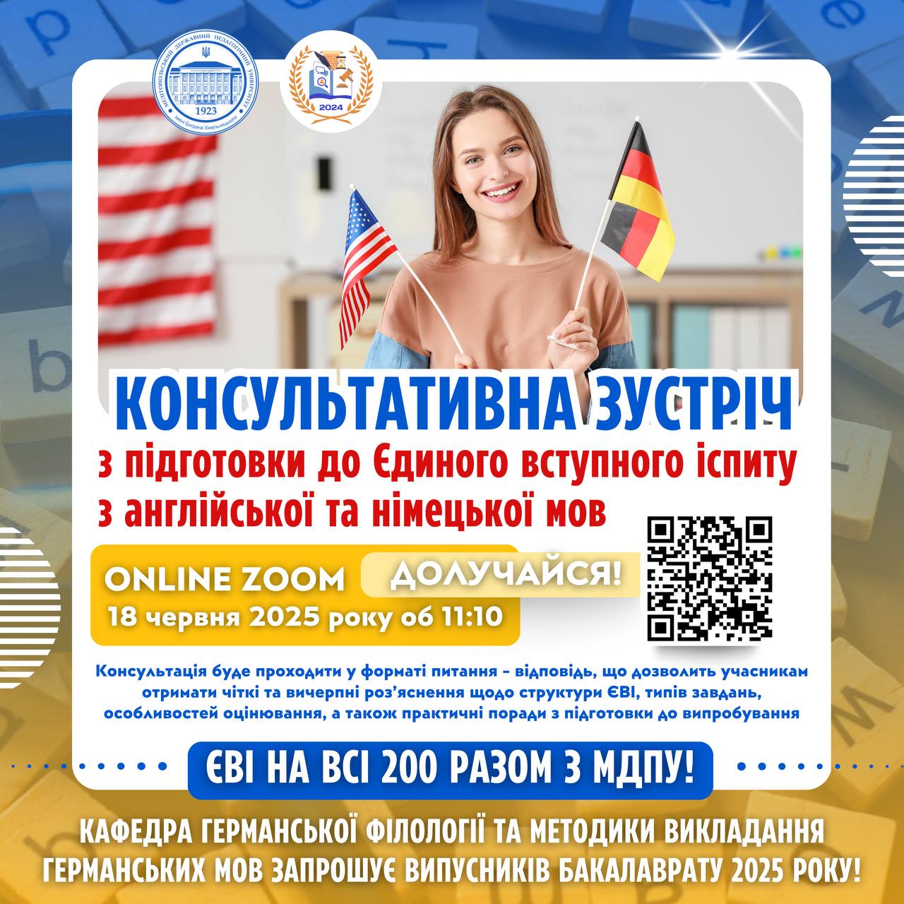 📢🇺🇦 Кафедра германської філології та методики викладання германських мов запрошує випускників бакалаврату на консультативну зустріч з підготовки до Єдиного вступного іспиту з англійської та німецької мов. ⁉️📑 Маєш запитання щодо структури Єдиного вступного іспиту (ЄВІ) з англійської або німецької мови?✅💻 Хочеш дізнатися більше про типові завдання, критерії оцінювання та отримати корисні лайфхаки? 📅👨🏼🎓 Тоді обов’язково […]