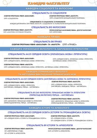 🏛️🇺🇦Наразі факультет представлений кафедрами: