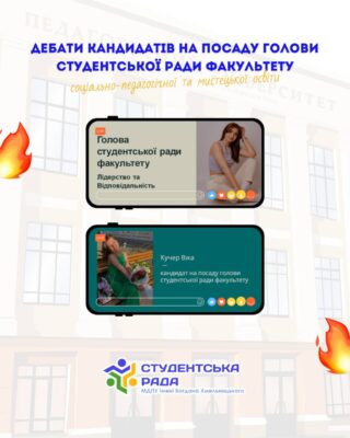 ‼ Дебати кандидатів на посаду голови студентської ради факультету інформатики, математики та економіки, на жаль, відмінилися через особисті обставини одного з кандидатів.
