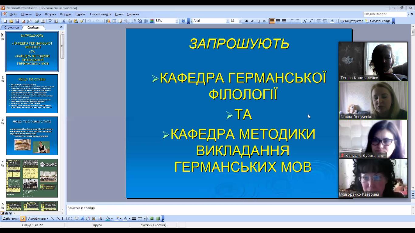 Відповідальний секретар приймальної комісії, доцент С.М. Дубяга розповіла абітурієнтам про основні умови вступу до закладу вищої освіти у 2020 році. Від декана філологічного факультету, доцента Т.В. Коноваленко майбутні студенти отримали корисні поради щодо успішної подачі документів, підрахування власного конкурсного балу та обрання пріоритетності заяв. Завідувач кафедри української мови, доцент З.О. Митяй, доценти кафедри германської філології Н.В. Денисенко та І.Ю. Жигоренко поділились інформацією про спеціальності філологічного факультету, предмети ЗНО для вступу них, можливості працевлаштування після закінчення навчання.
