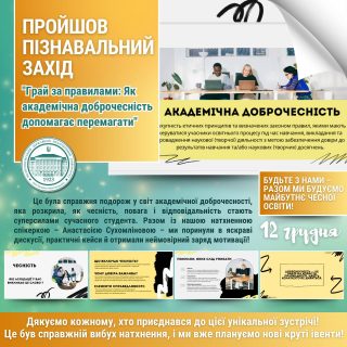 🇺🇦⭐️12 грудня 2024 року пройшов надзвичайно захопливий захід “Грай за правилами: Як академічна доброчесність допомагає перемагати” – і це було просто WOW!