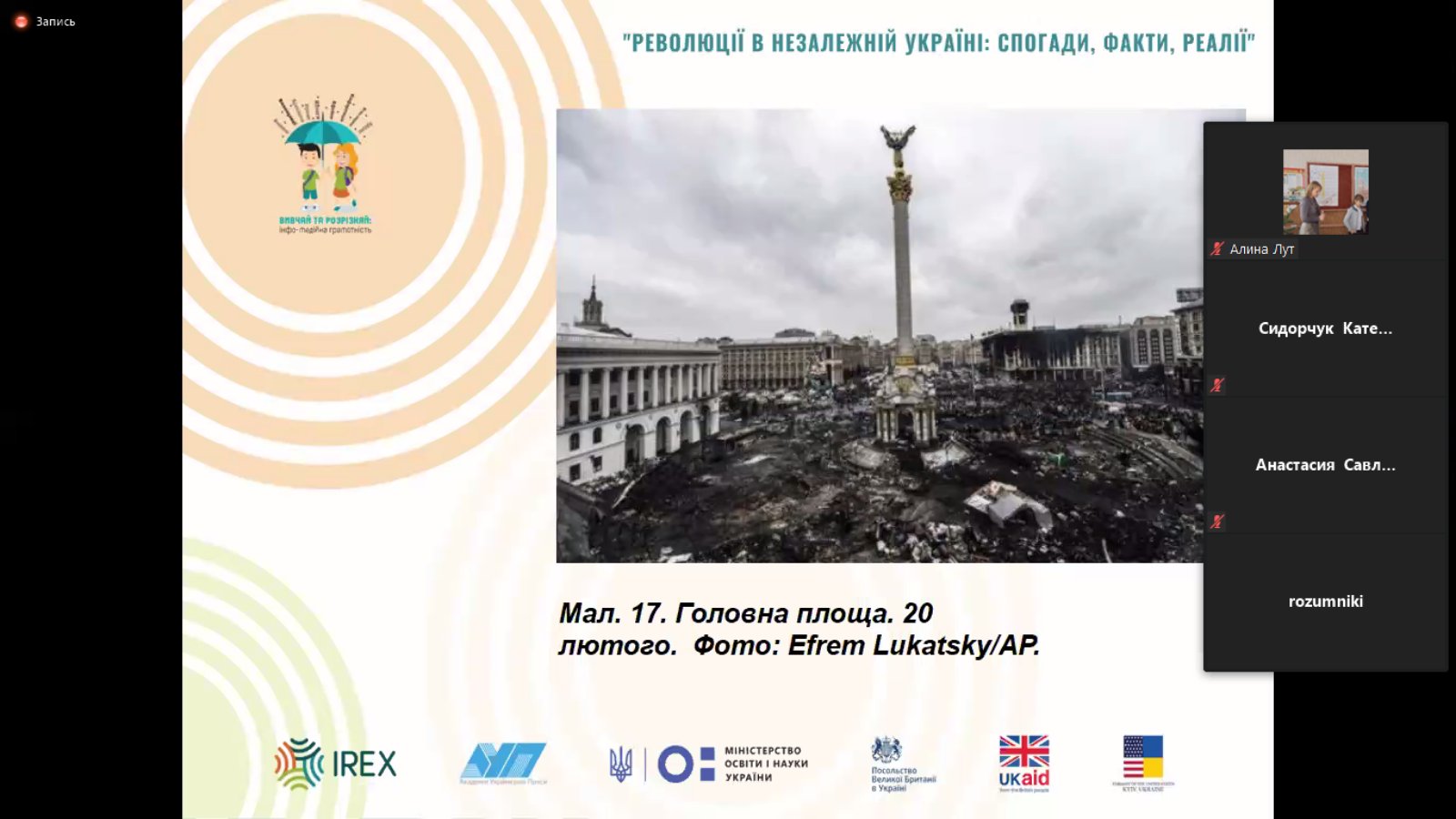 Метою даного заходу є надання об’єктивної інформації з історичних подій новітньої історії України. Формування вміння працювати з джерелом історичної інформації, аналізувати та систематизувати отриману інформацію. Для вчителя історії є важливим вміти орієнтуватися в просторі інформації, для того щоб надавати об’єктивну інформацію. Розвиток критичного мислення, критичний аналіз є необхідною складовою навчального процесу у ЗОШ.