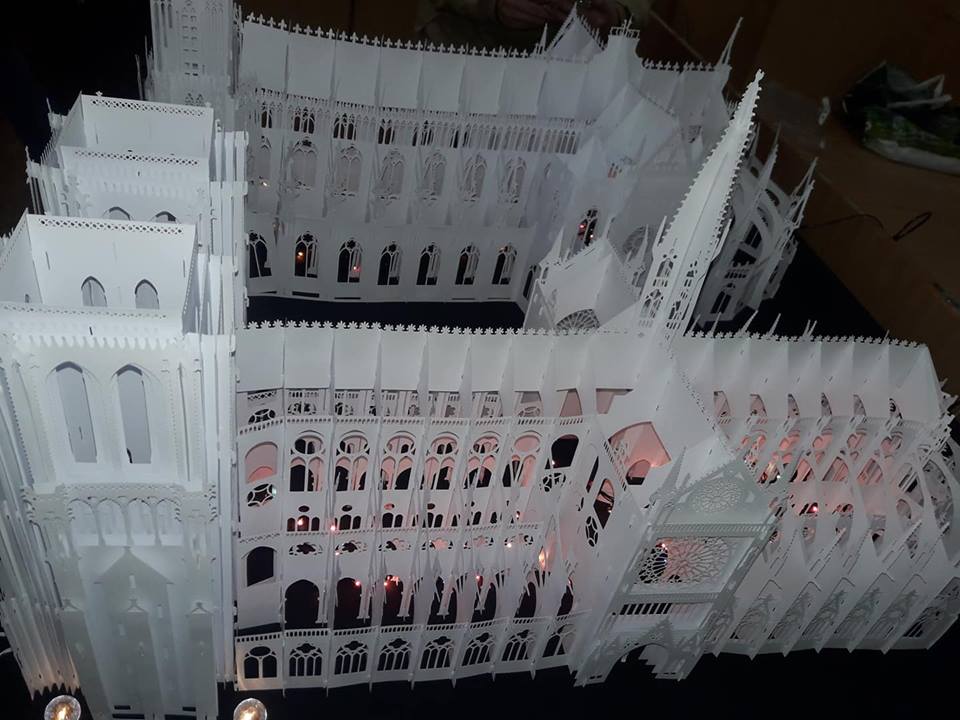 Відкрив презентацію завідуючий кафедрою інформатики і кібернетики Вячеслав Осадчий, який представив широкому загалу Олександра і Анну Брянцевих і Анну Чемерис. У своєму вступному слові професор охарактеризував їх не тільки як фахівців своєї справи, які ставлять перед собою творчі завдання і успішно їх реалізують, а й як людей, які «працюють і вдень і вночі» і «двомісячну відпустку розглядають насамперед як нагоду повністю «зануритися» у свій творчий проект», і все одно «шкодують, що на добу припадає лишень двадцять чотири години та жалкують, що відпустка у педагогів така коротка». Аудиторія по-доброму поставилася до представлення авторів і з нетерпінням почала очікувати на їх безпосередню розповідь, як вони створили ці паперові дива. А дивуватися гості презентації починали вже з моменту потрапляння у аудиторію. Адже вони, перш зайняти свої місця, мали пройти повз підсвічених м’яким розсіяним білим і загадковим мерехтливим кольоровим світлом два паперові собори — Реймсський і Нотр-Дам.