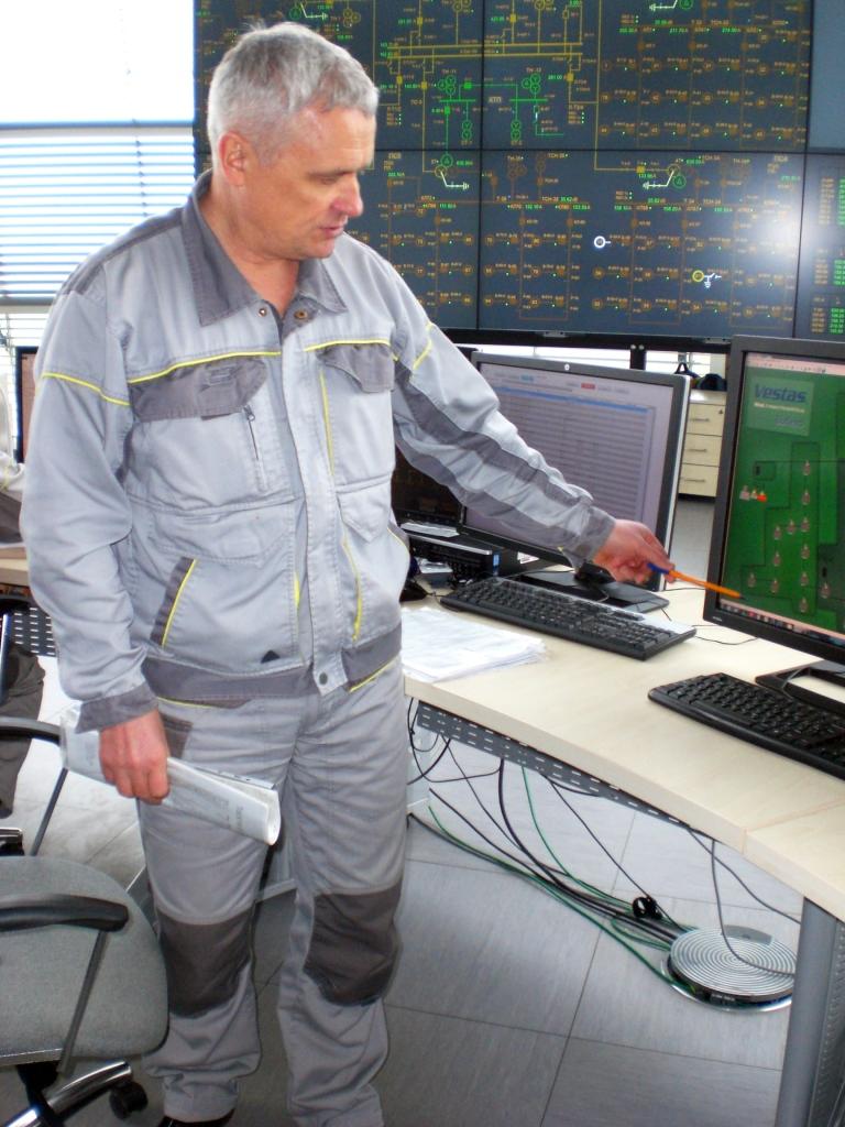 По завершенню екскурсії відбувся виїзд до однієї з 65 турбін, на прикладі якої Геннадій Жуков розповів про загальні риси роботи енергетичної системи Ботієвської ВЕС. Учасники екскурсії зблизька відчули всю велич та потужність вітрової турбіни, довжина лопаті якої складає 55 метрів при вазі 12 тонн, висота вежі – 94 метри, а загальна висота конструкції – 149 м. Площа поверхні, яку описують лопаті турбіни становить майже 1 гектар. Сумарна ж вага агрегату без фундаменту становить 400 тонн.