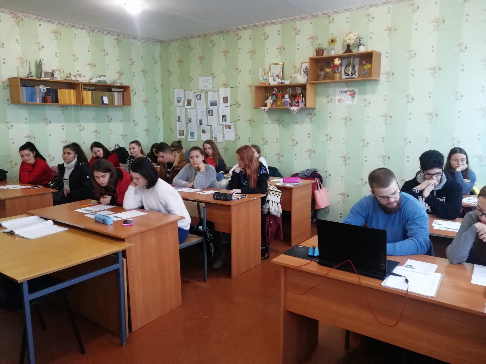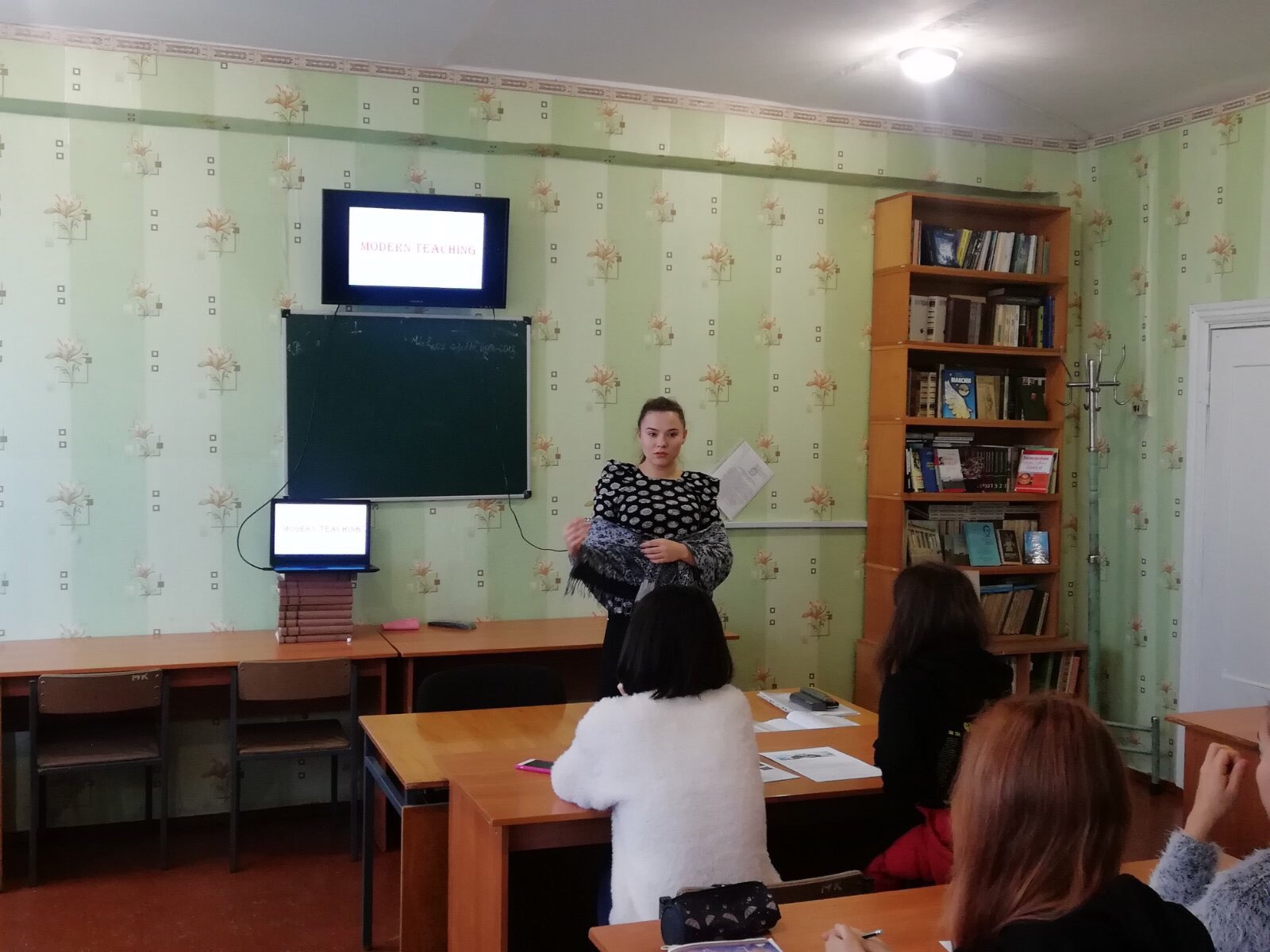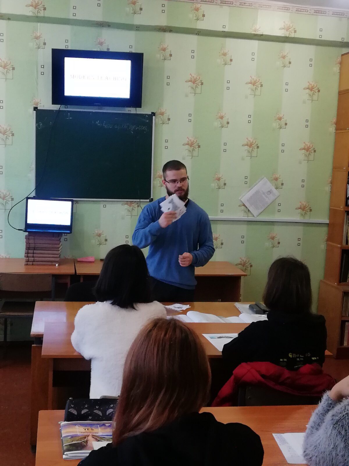 Естафету прийняли студенти 4 курсу, які поєднують навчання в університеті з педагогічною діяльністю у різних освітніх закладах. Бруснік О. (116-ф гр.) розповів про особливості застосування наочності під час навчання лексики на початковому етапі навчання. Мартиненко А. (416-ф гр.) поділилася досвідом роботи з анімаційними фільмами на середньому етапі навчання. Гаркушка Д. (416-ф гр.) продемонструвала, як використовувати пісенний матеріал на старшому етапі навчання. Павленко А. (116-ф гр.) узагальнила свій досвід використання різноманітних дидактичних ігор на уроках англійської мови.