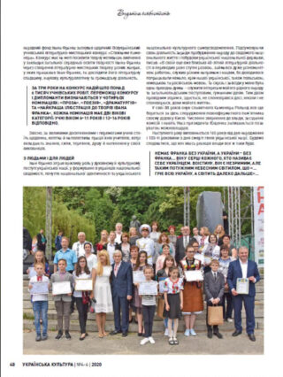 У журналі «Українська культура» №4-6 2020 р. вийшла друком стаття, де висвітлені основні проекти Міжнародного фонду Івана Франка та проекти, які на сьогодні втілені в життя. Невмируще Франкове слово житиме у віках,а українці будуть це слово популяризувати.