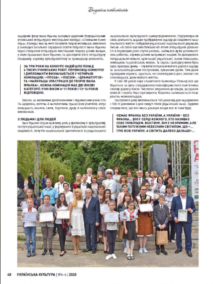У журналі «Українська культура» №4-6 2020 р. вийшла друком стаття, де висвітлені основні проекти Міжнародного фонду Івана Франка та проекти, які на сьогодні втілені в життя. Невмируще Франкове слово житиме у віках,а українці будуть це слово популяризувати.