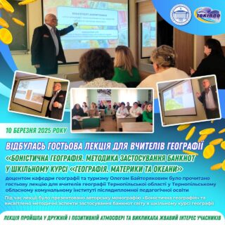🎓💫 Під час лекції було презентовано авторську монографію «Боністична географія» та висвітлено переваги, особливості та методичні аспекти застосування банкнот світу в шкільному курсі географії. Окрему увагу Олег Зуфарович зосередив на прикладах комплексного географічного аналізу окремих банкнот, що дозволяє визначити особливості рельєфу, тектонічної будови, клімату і органічного світу місцевості, виявити причинно-наслідкові зв’язки між ними, а також встановити зв’язки з іншими шкільними предметами.