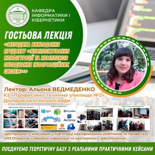 💻💫Лекцію на тему «Методика викладання предмету «Комплектування конфігурації та комплексів обладнання інформаційних систем»»провела Альона ВЕДМЕДЕНКО, викладач дисциплін ІТ-напряму.
