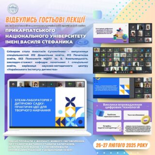 🎓💫 26 лютого студенти 3-4 курсів бакалаврату та 1 курсу магістратури дізналися про створення STEAM-лабораторії у закладах дошкільної освіти. Лекторка розповіла про ключові принципи організації простору, який сприяє розвитку пізнавальної активності та креативного мислення дітей. Студенти жваво обговорювали ідеї, ділилися своїм баченням та аналізували практичні кейси впровадження STEAM-проєктів у навчальний процес.