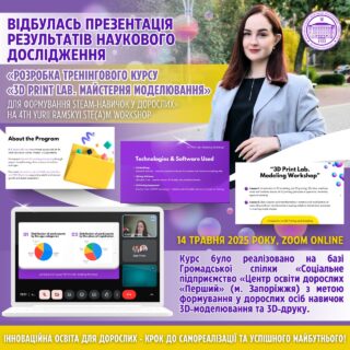 📚🎓 Курс було реалізовано на базі Громадської спілки «Соціальне підприємство «Центр освіти дорослих «Перший» (м. Запоріжжя) з метою формування у дорослих осіб навичок 3D-моделювання та 3D-друку.