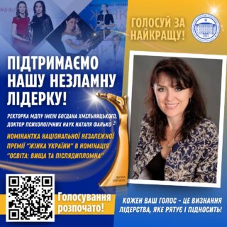🏛️❤️Шановна родино МДПУ імені Богдана Хмельницького, дорогі партнери, випускники, колеги, друзі! Сьогодні ми звертаємось до кожного, хто є частиною великої і міцної спільноти нашого університету, аби разом зробити надзвичайно важливу справу — підтримати ректорку Наталю Миколаївну Фалько у національній незалежній премії “Жінка України”, номінація “Освіта: вища та післядипломна”.