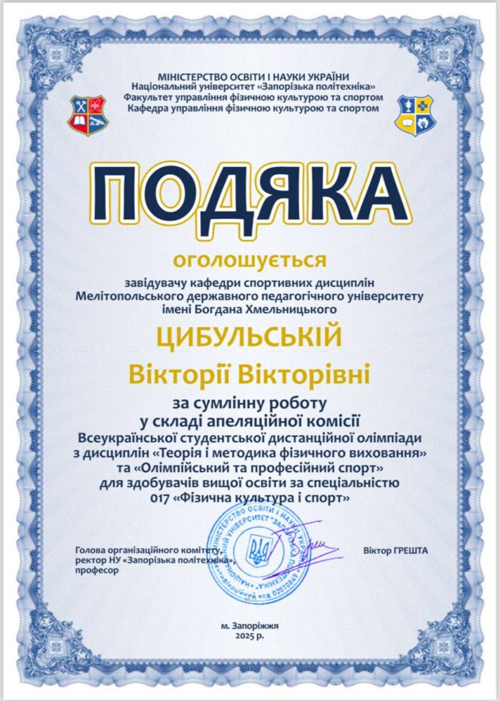 ‼️⭐️ Подяку за сумлінну роботу у складі журі Всеукраїнської студентської дистанційної олімпіади з дисциплін «Теорія і методика фізичного виховання» та «Олімпійський та професійний спорт» отримав