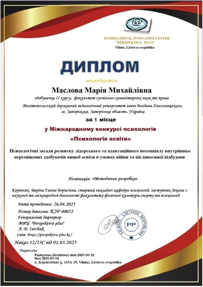 📚🧩Тема роботи: Психологічні засади розвитку лідерського та адаптаційного потенціалу внутрішньо переміщених здобувачів вищої освіти в умовах війни та післявоєнної відбудови