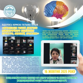👩🏼💼👏🏻Під час зустрічі лекторка поділилась власними професійними напрацюваннями, розкрила тему «Організація роботи дитячого психіатричного відділення: структура, виклики, практика».