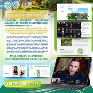 📚 Під час лекції було висвітлено сучасні підходи до формування професійної ідентичності фахівця з ландшафтного дизайну, питання розмежування професіоналізму та псевдопрактик у галузі, а також значення науково обґрунтованих рішень у створенні та управлінні зеленими просторами.