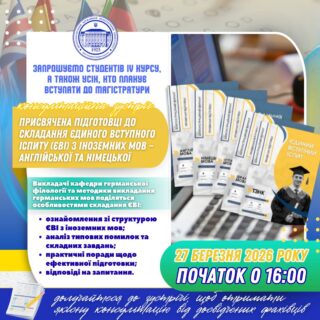 📚 Викладачі кафедри германської філології та методики викладання германських мов поділяться особливостями складання ЄВІ, проведуть детальний розбір тестових завдань та нададуть слушні рекомендації, які допоможуть вам впевнено почуватися під час іспиту.