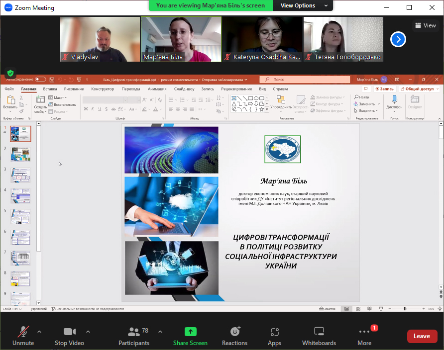 Пленарне та секційні засідання були проведені у дистанційному форматі на платформі ZOOM. Доповіді учасників стосувалися актуальних проблем цифровізації суспільства, зокрема економіки та освіти в умовах війни, розвитку цифрових технологій та програмного забезпечення.