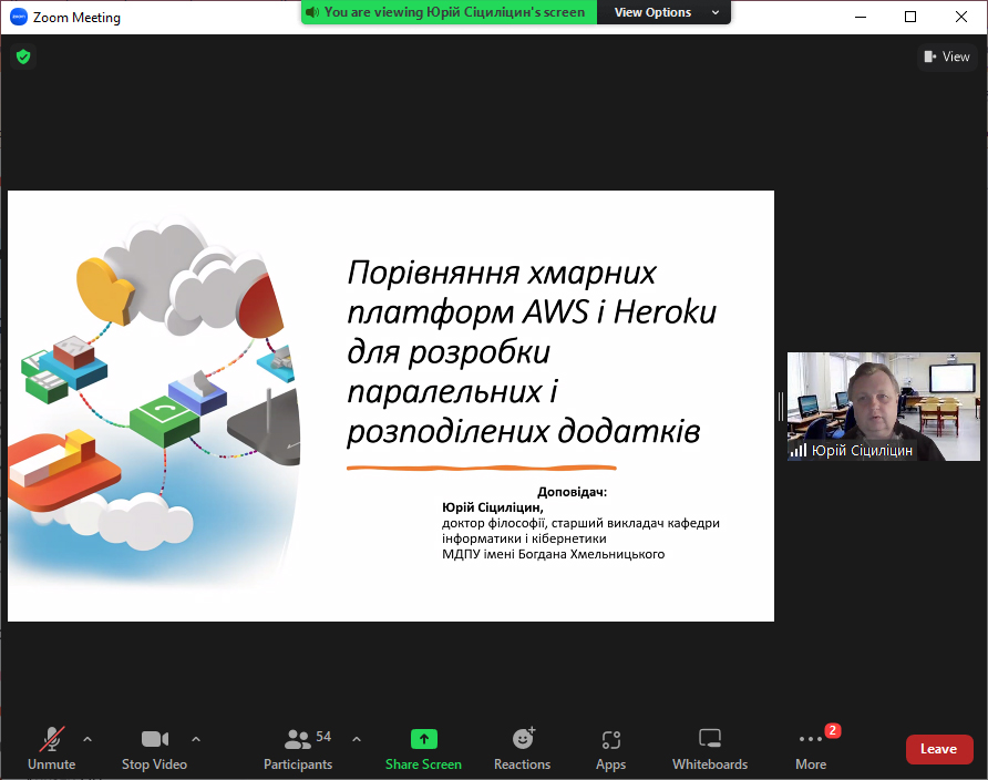 Чітку організацію конференції забезпечили оргкомітет і зокрема модератор – Сіциліцин Ю.О., доктор філософії, старший викладач кафедри інформатики і кібернетики.