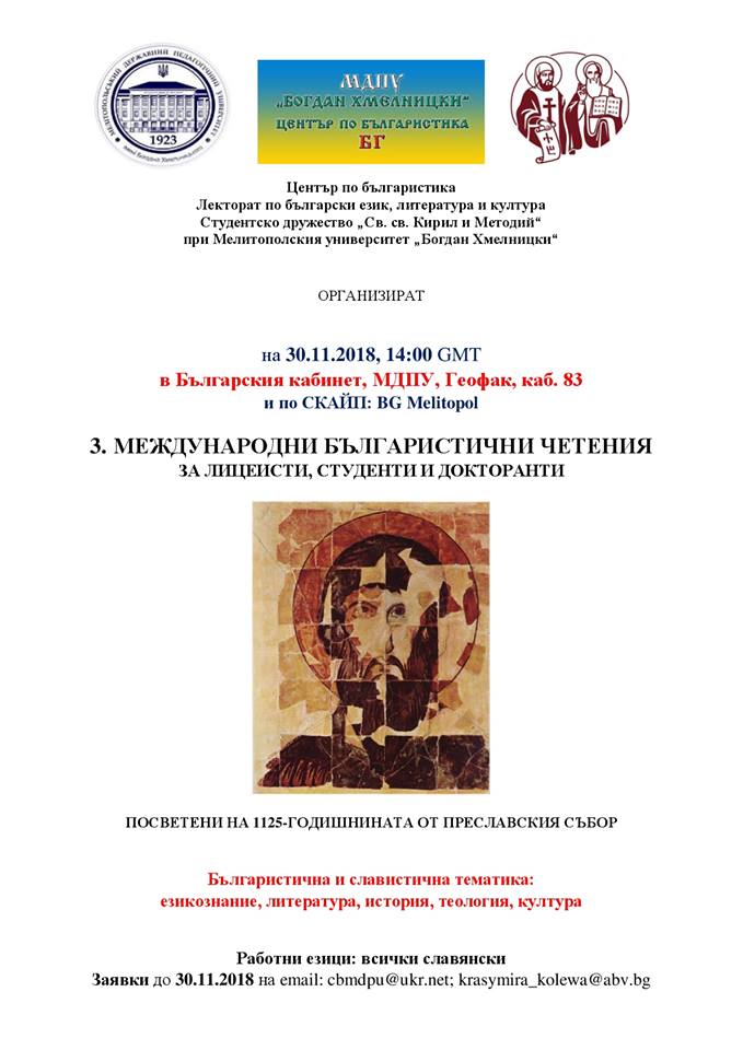 Наукову конференцію «ІІІ Міжнародні болгаристичні читання» було організовано та проведено лектором болгарської мови Красімірою Колєвою за сприяння центру болгаристики, кафедри української мови та кафедри історії, археології і філософії.