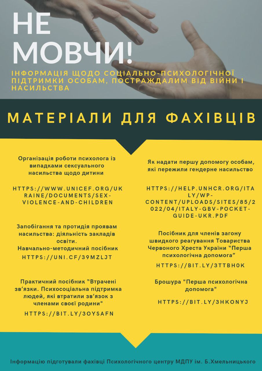 1. Організація роботи психолога із випадками сексуального насильства щодо дитини – https://www.unicef.org/ukraine/documents/sex-violence-and-children