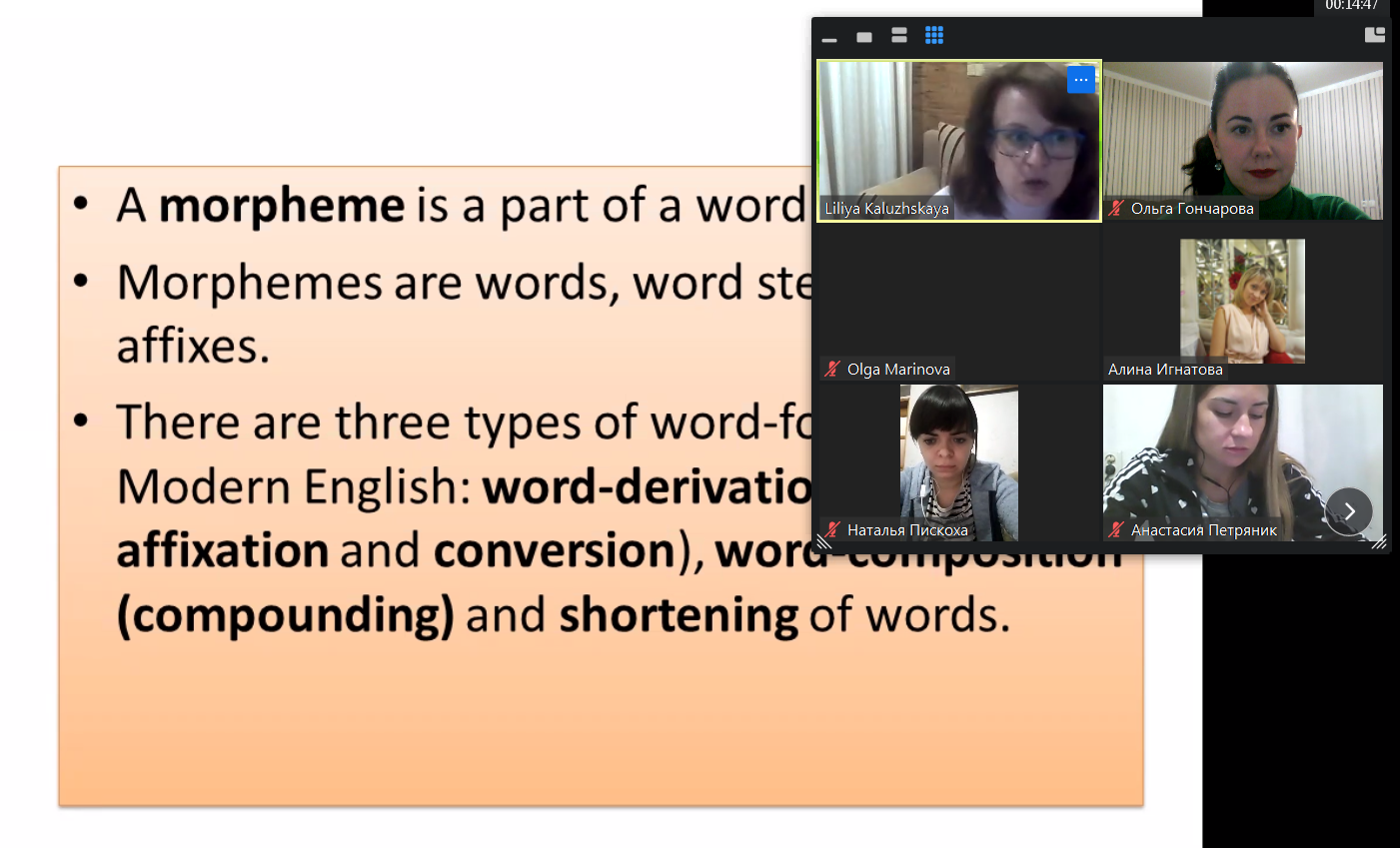 В рамках семінару відбулося три онлайн-сесії на платформі ZOOM, які були присвячені наступним методичним аспектам навчання англійської мови: